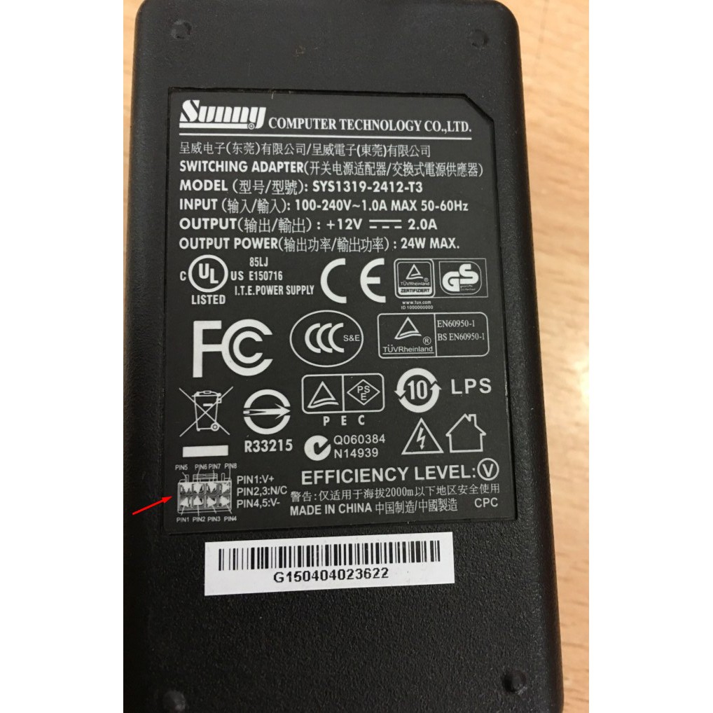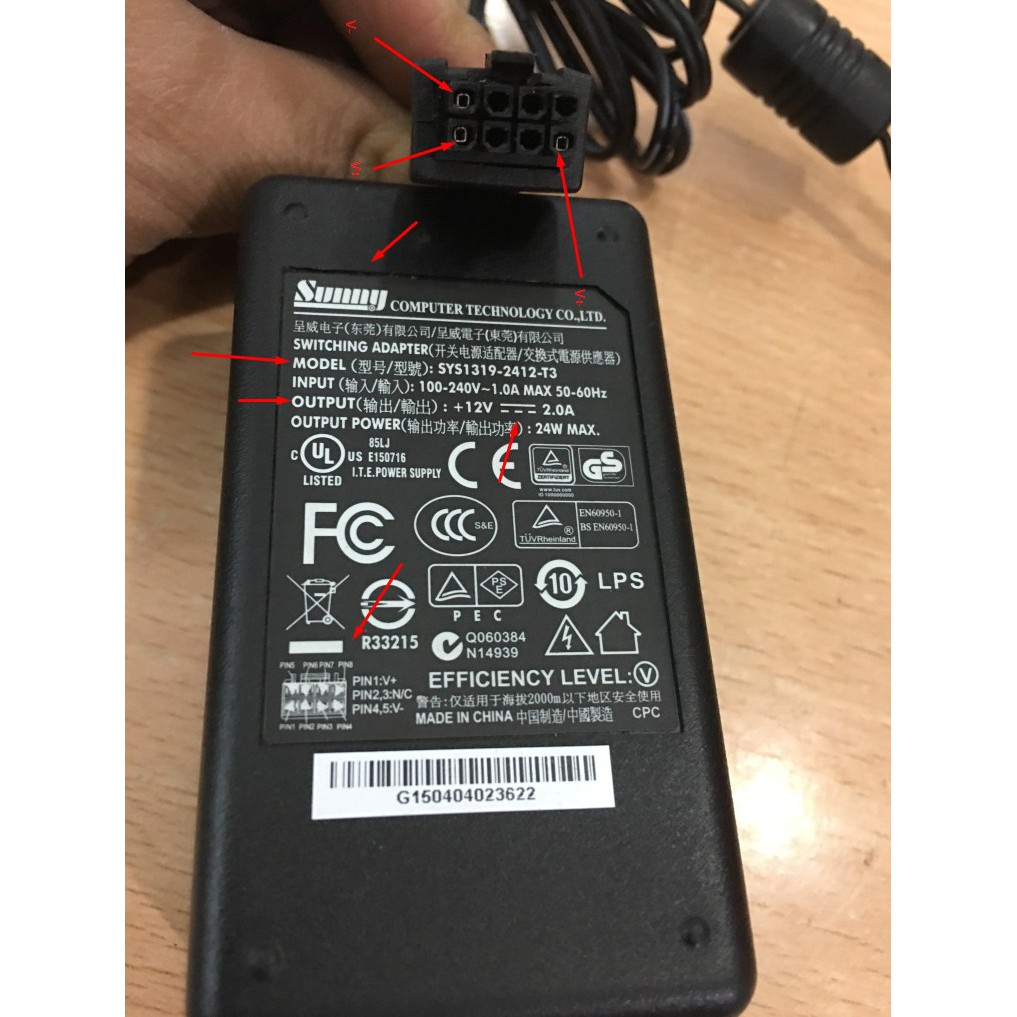 Tên sản phẩm: Adapter Sunny SYS1319-2412-T1 12V 2A 8 pin