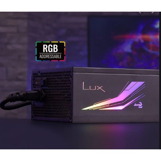 Giới thiệu nguồn máy tính Aerocool LUX RGB 750WLUX RGB là bộ nguồn máy tính tầm trung mới nhất đến từ thương hiệu Aerocool, được trang bị với tổng công suất 750W hỗ trợ tối ưu cho các cấu hình chơi game tầm trung, đồng thời với thiết kế đèn RGB đem lại cái nhìn độc đáo và tôn lên vẻ đẹp của nội thất bên trong máy tính. Không những vậy, game thủ hoàn toàn có thể nâng cấp thêm phần cứng về sau này 1 cách dễ dàng vào mức công lên tới 750W của LUX RGB.