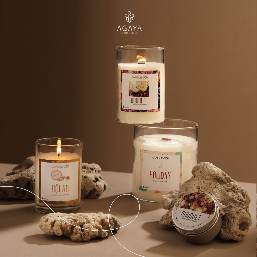 AGAYA/ CANDLE CUP ra thị trường với 18 mùi hương chia làm 5 tone, với thành phần chính là sáp cọ tự nhiên lành tính sẽ giúp bạn dễ dàng lựa chọn được mùi hương yêu thích cho chính bản thân cũng như cho những người thương bên cạnh.