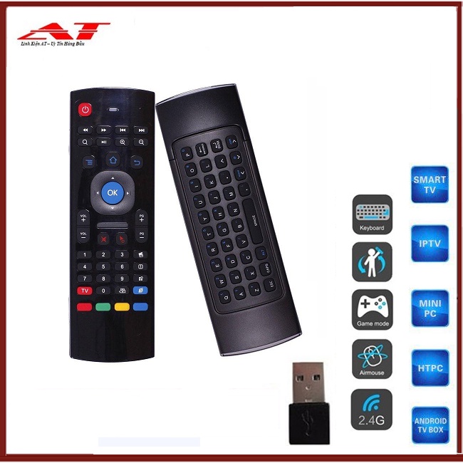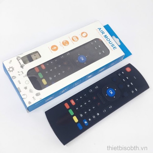 Air Mouse hoạt động dựa trên sóng Wireless với việc kết nối từ điều khiển đến một đầu cắm dạng USB với Box Android.