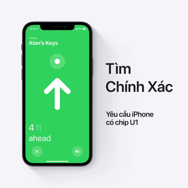 • Tính năng Tìm Chính Xác với công nghệ Ultra Wideband dẫn bạn đến ngay vị trí thẻ AirTag ở gần bạn (trên một số phiên bản iPhone) (1)