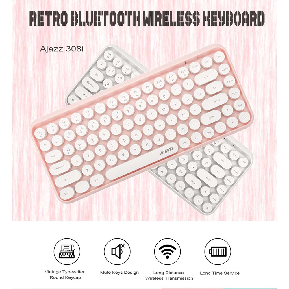 Ajazz 308i- Bàn Phím Giả Cơ Không Dây Bluetooth- Dùng Được Cho Laptop, PC Máy tính bàn Windows, Mac OS, iOS, Android