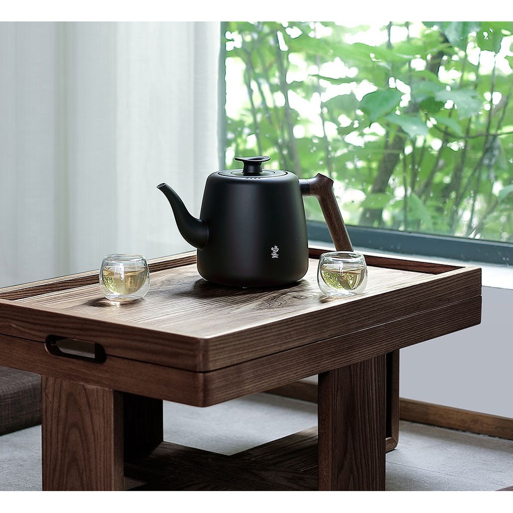 Bảng điều khiển của ấm đun được gia công bằng kính cường lực màu đen với các nút cảm ứng nhẹ nhàng, cao cấp, cho thao tác sử dụng dơn giản và nhanh chóng. Bên trong ấm đun được làm từ vật liệu inox 304 bền bỉ, giúp quá trình đun sôi nước nhanh chóng hơn.