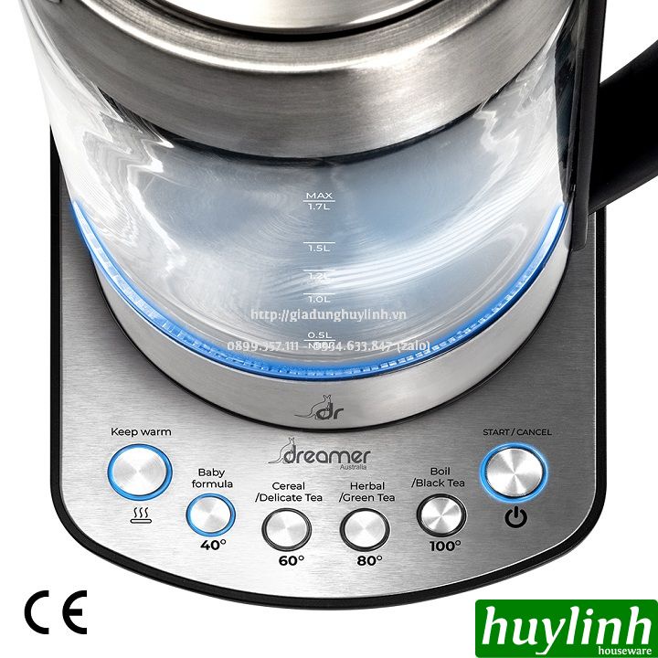Bình đun siêu tốc Dreamer DK-S17 với dung tích 1.7 lít, bảng điều khiển hiện đại với khả năng điều khiển nhiệt và giữ ấm thông minh, với tính năng pha trà tiện dụngHuy Linh phân phối và bảo hành chính hãng tại Dreamer Việt Nam.