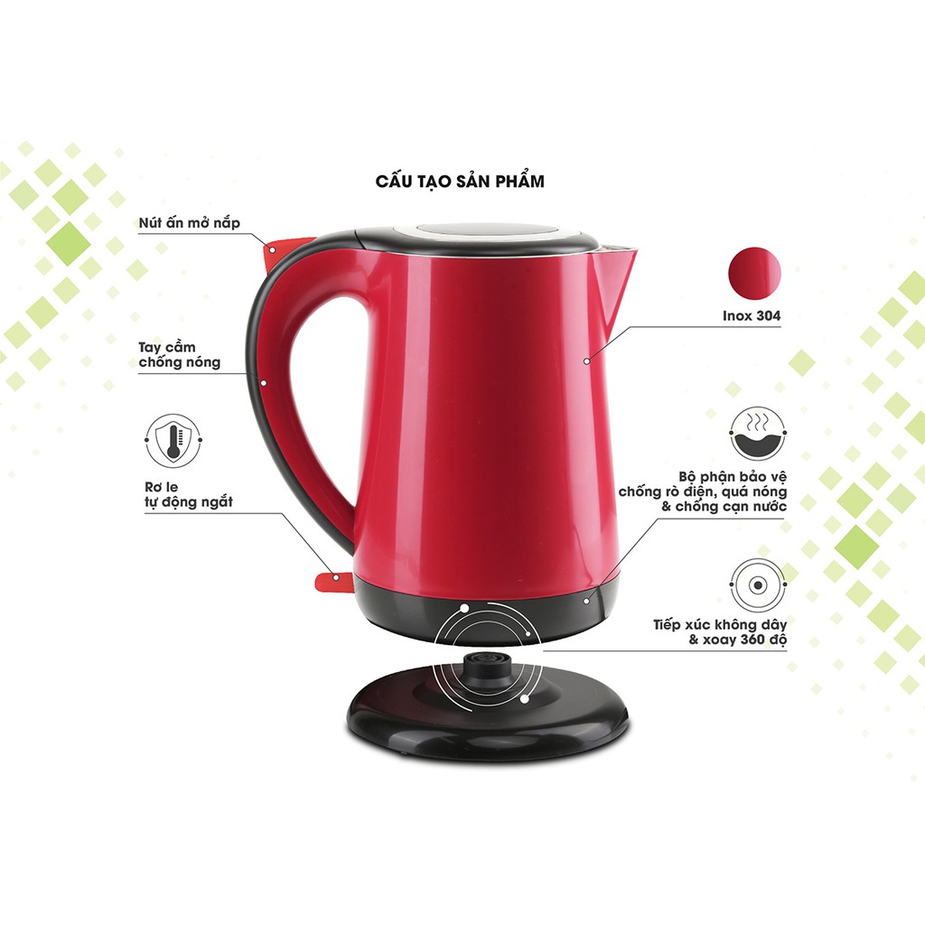 👍 Tự động ngắt khi nước sôi hay nước bị trào do đổ quá vạch max quy định, đảm bảo an toàn cho người sử dụng