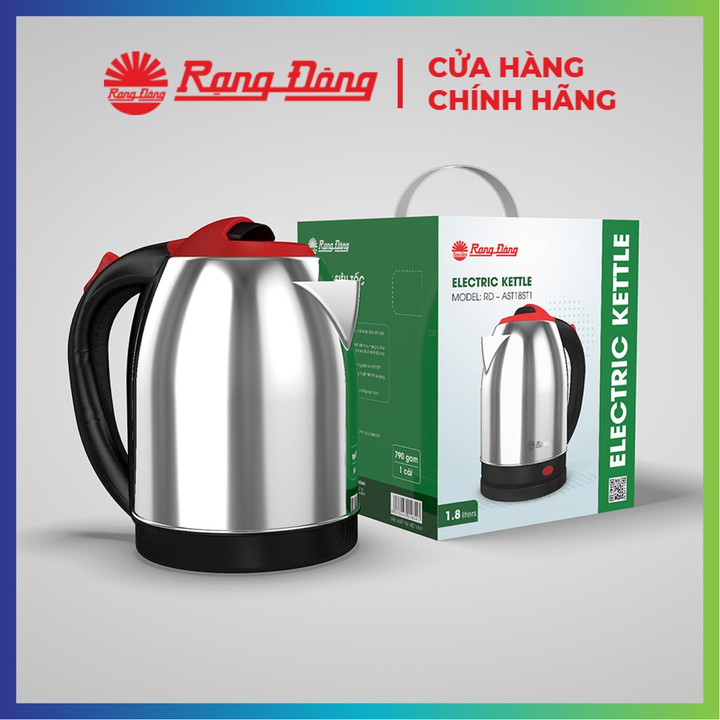 Nhà cửa & Đời sống > Dụng cụ nhà bếp > Dụng cụ pha trà, cà phê || Ấm điện siêu tốc 1,8 lít Rạng Đông Inox 304 cao cấp, model RD-AST18ST1, 2 màu nắp đỏ/nắp xanhCòn hàng