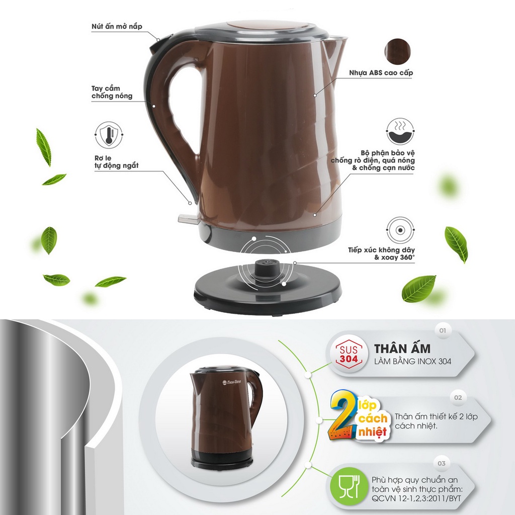 - Thân ấm được làm bằng Inox 304 cao cấp, không phản ứng hóa học dù ở nhiệt độ cao và an toàn thực phẩm cho người sử dụng.