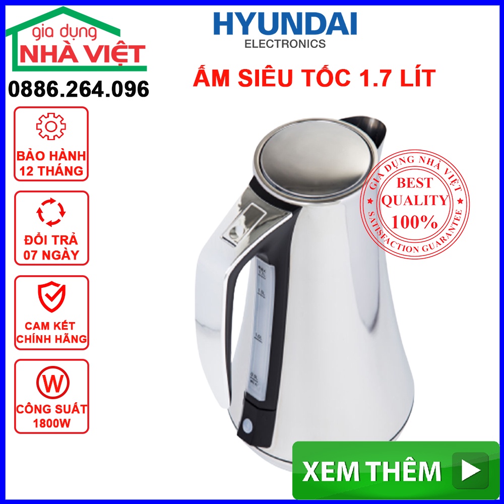Giới thiệu Ấm Điện, Ấm Đun Điện Tử Chính Hãng HYUNDAI 1,7L HDE 5001S - Đun nóng nhanh, chịu nhiệt, độ bền cao, bảo hành 12 tháng .