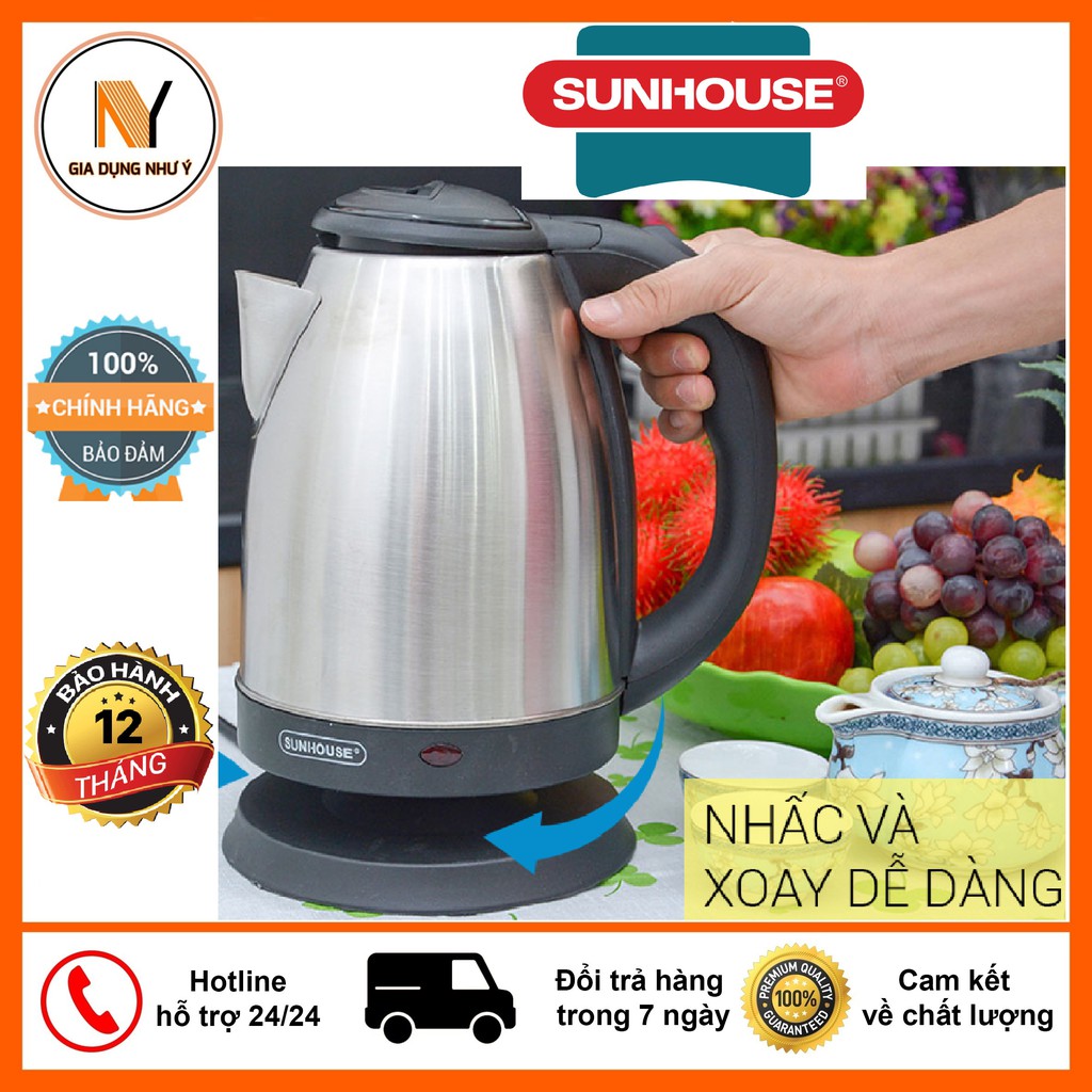 Ấm Điện - Ấm siêu Tốc SUNHOUSE SHD1182 Dung Tích 1.8 Lít, Bảo Hành 12 Tháng