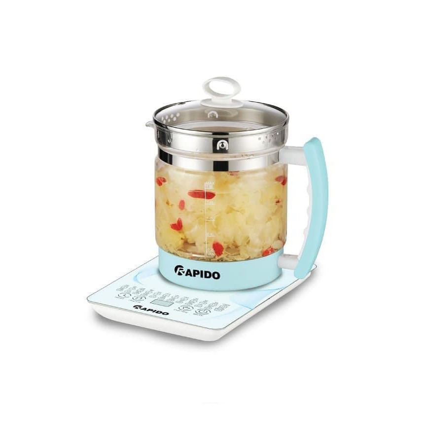 Không đơn thuần là ấm đun nước thông thường, ấm điện đa năng Rapido với 10 chế độ nấu tự động sử dụng dễ dàng, nhanh chóng và tiện lợi. Ngoài chức năng nấu nước ấm điên đa năng Rapido còn là ấm pha trà, cà phê tự động, nồi hầm các món dinh dưỡng yêu cầu thời gian dài như sắc thuốc bắc, hầm cháo, chưng yến ….hay nồi đa năng tiện dụng dành riêng cho dân văn phòng như nấu mì, nấu súp, nấu lẩu, và các món tráng miệng như sữa chua, chè,… hâm đồ ăn nhanh tiện lợi mà không cần tới lò vi sóng, không sợ sóng viba ảnh hưởng tới sức khỏe: hâm sữa, hâm rượu, hâm đồ ăn thừa,…
