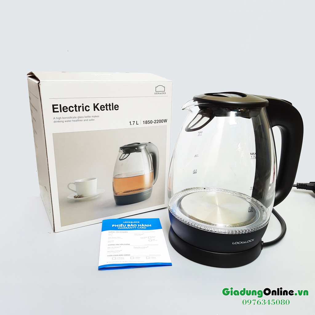 Ấm Điện Đun Nước Bằng Thủy Tinh Lock&Lock EJK432 1.7L Hàng Chính Hãng- Thương hiệu: Lock&Lock