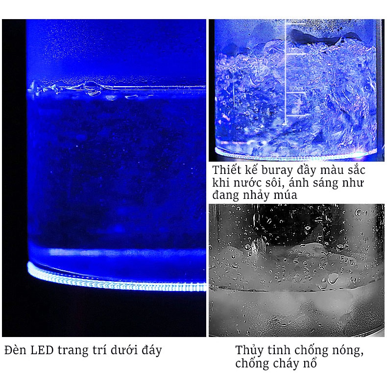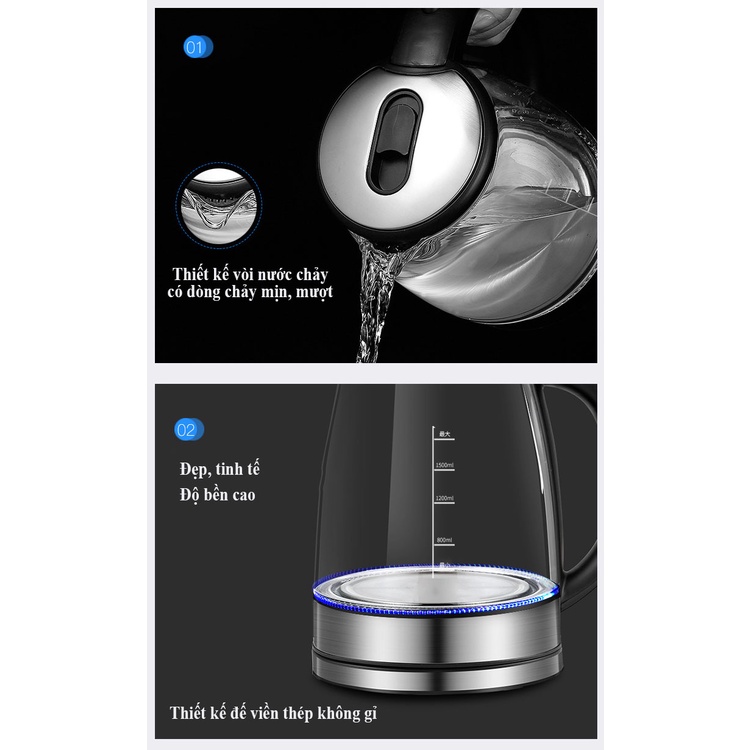 - Ngoài ra thân ấm thiết kế đèn LED thông minh, tự động bật sáng trong quá trình nấu và tự động tắt đèn khi nước sôi