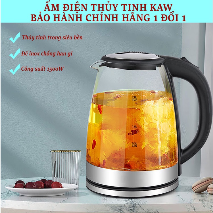 - Ấm siêu tốc thủy tinh KAW sang trọng, tinh tế với thiết kế thân bình được làm bằng thủy tinh trong suốt cao cấp có khả năng chịu nhiệt tốt và an toàn tuyệt đối cho sức khỏe của người sử dụng.