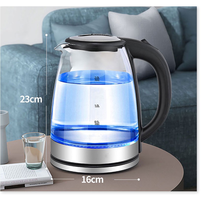 Ấm Điện Đun Nước KAW RK1818 ✔️Chính Hãng✔️ dung tích 2L, tiết kiệm điện, bình thủy tinh trong suốt, nước nóng siêu nhanh
