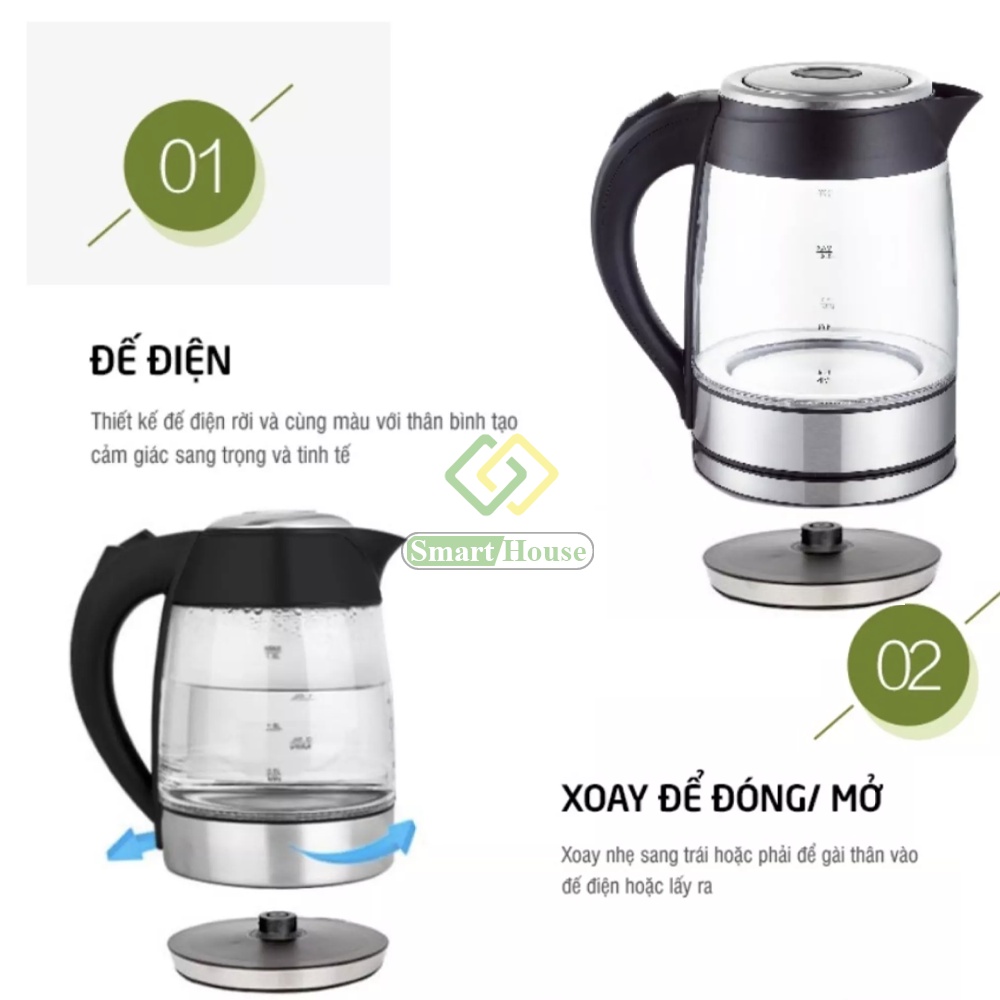 Ấm Điện Đun Nước LocknLock Bằng Thủy Tinh 1.8L 1850W Cách Nhiệt - Smart House