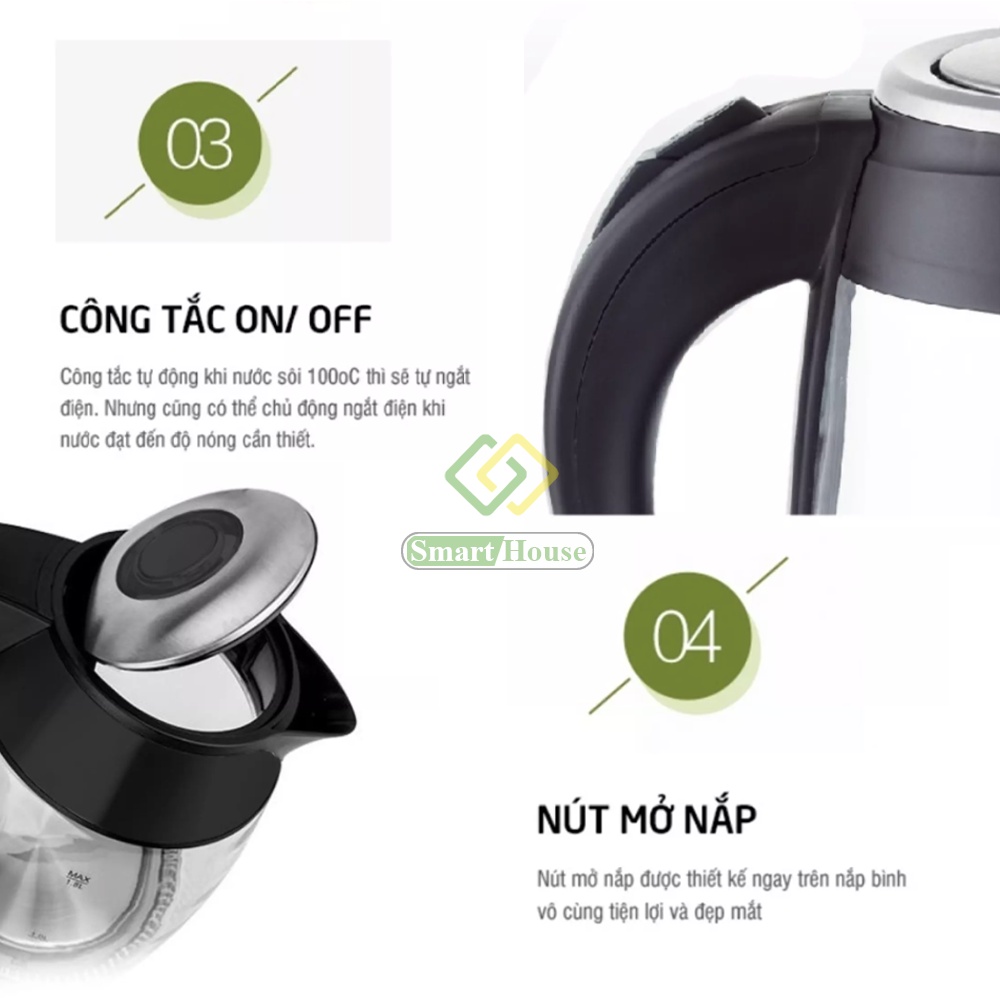 - Ấm có thiết kế bình thủy tinh trong suốt.