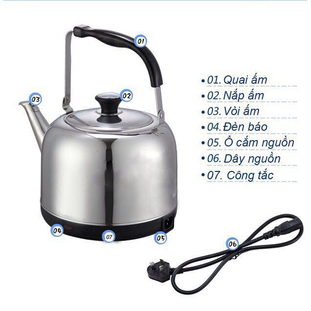 ✔️ Ấm đun nước điện có còi Đạt Tường chất liệu Inox