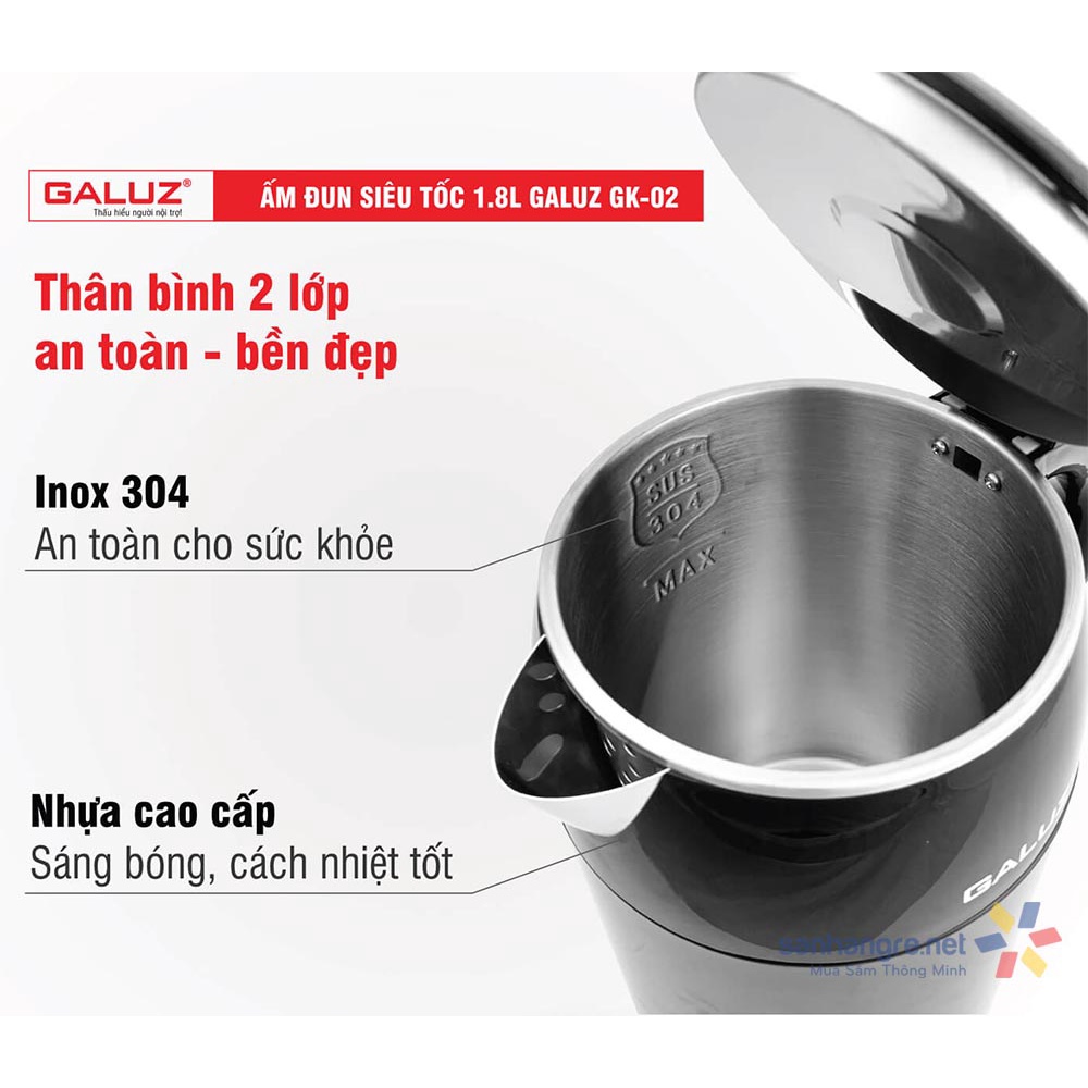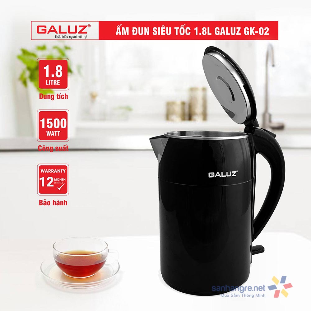 Ấm điện siêu tốc cách nhiệt Galuz GK-02 dung tích 1.8L - Bảo hành 12 tháng