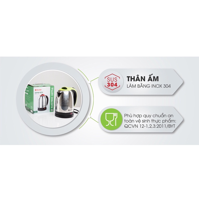 Ấm điện siêu tốc INOX 304 RẠNG ĐÔNG 1,8 lít RD-ÁT18ST1 màu ngẫu nhiên
