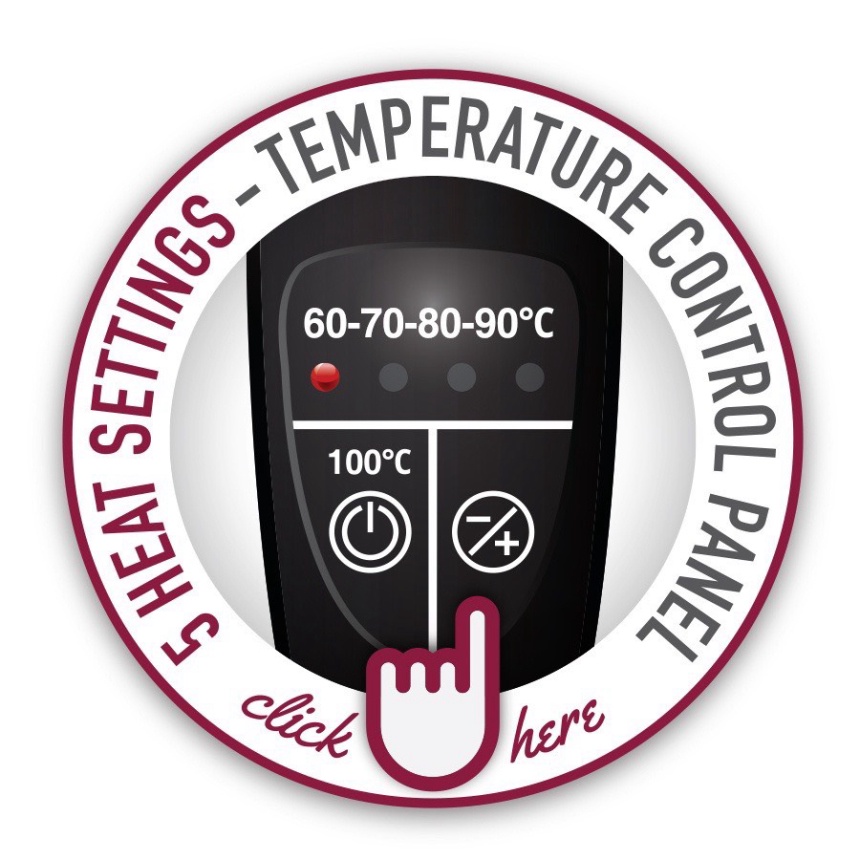 - Bên cạnh đó, sản phẩm còn trang bị bảng điều khiển thông minh trên tay cầm với 2 chức năng: Đun sôi, giữ ẩm với 4 nhiệt độ khác nhau tùy nhu cầu sử dụng.