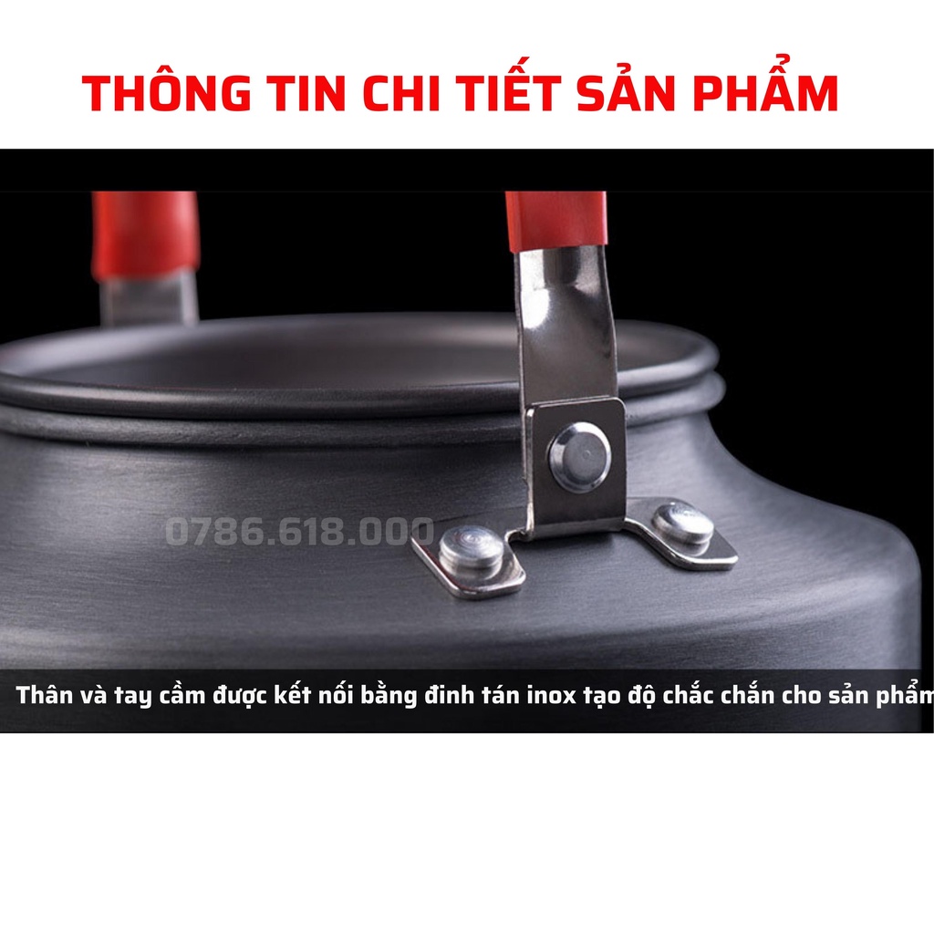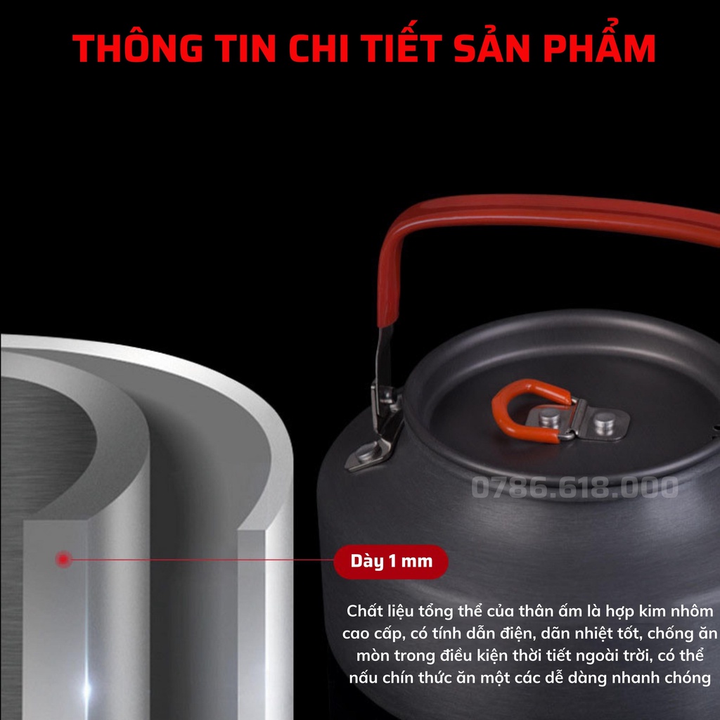 - Đây là 1 sản phẩm được thiết kế tinh tế, nhỏ gọn với trọng lượng chỉ 220 gam, nó phù hợp với các chuyến đi dã ngoại, cắm trại, leo núi....hay đơn giản 1 góc nhỏ bên ban công nhà bạn. Nó có thể cung cấp cho bạn một tách trà nóng hay một ly cafe chỉ sau vài phút. Ấm được là từ hợp kim nhôm cao cấp dày 1mm có khả năng dẫn điện, dẫn nhiệt tốt, Đáy ấm được thiết kế các vòng tròn đồng tâm giúp tiết kiệm nhiệt lượng khi đun nấu và giảm thời gian làm chín thức ăn. Vòi ấm được thiết kế ngắn theo kiểu truyền thống Trung Quốc giúp việc rót nước được dễ dàng và không làm rớt nước ra bên ngoài.