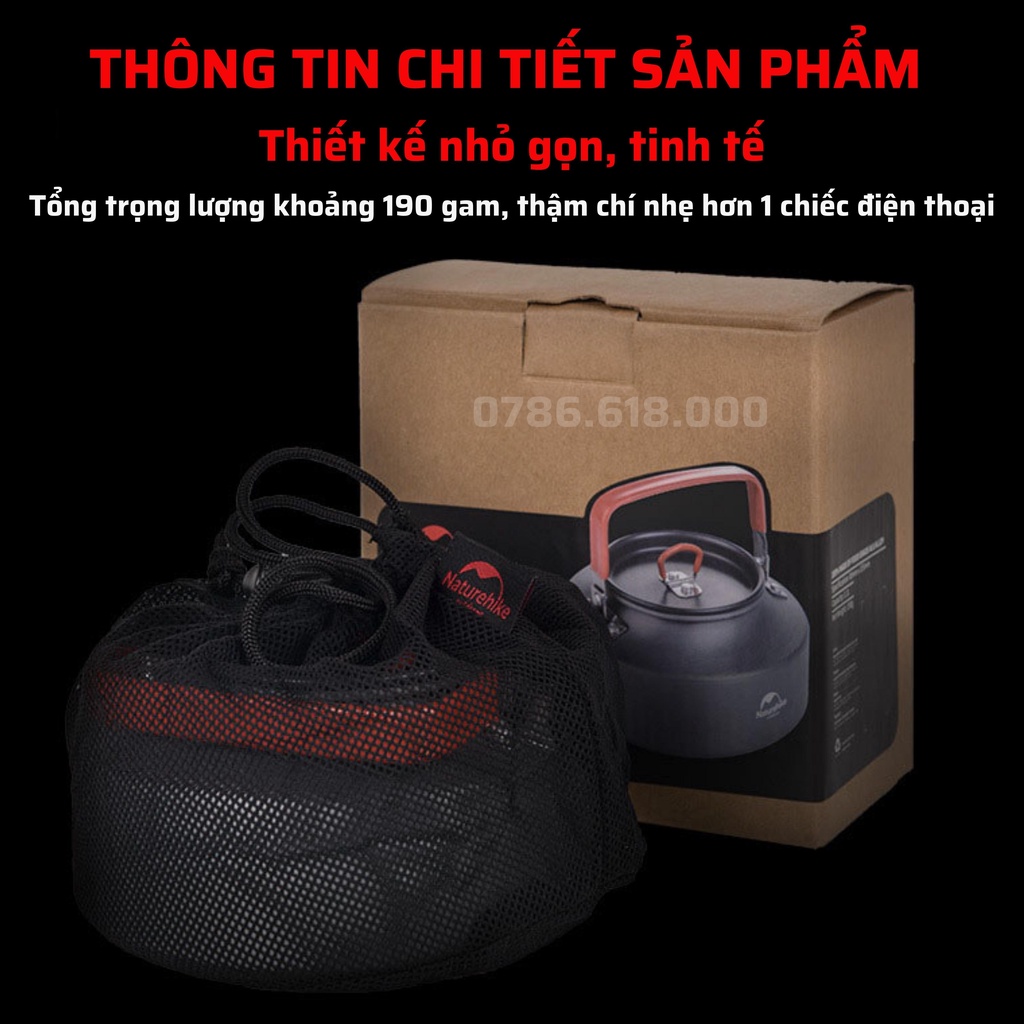 Ấm du lịch cắm trại pha trà pha cà phê ngoài trời Naturehike bằng hợp kim nhôm cao cấp với thiết kế nhỏ gọn tiện dụng.- MÔ TẢ SẢN PHẨM: