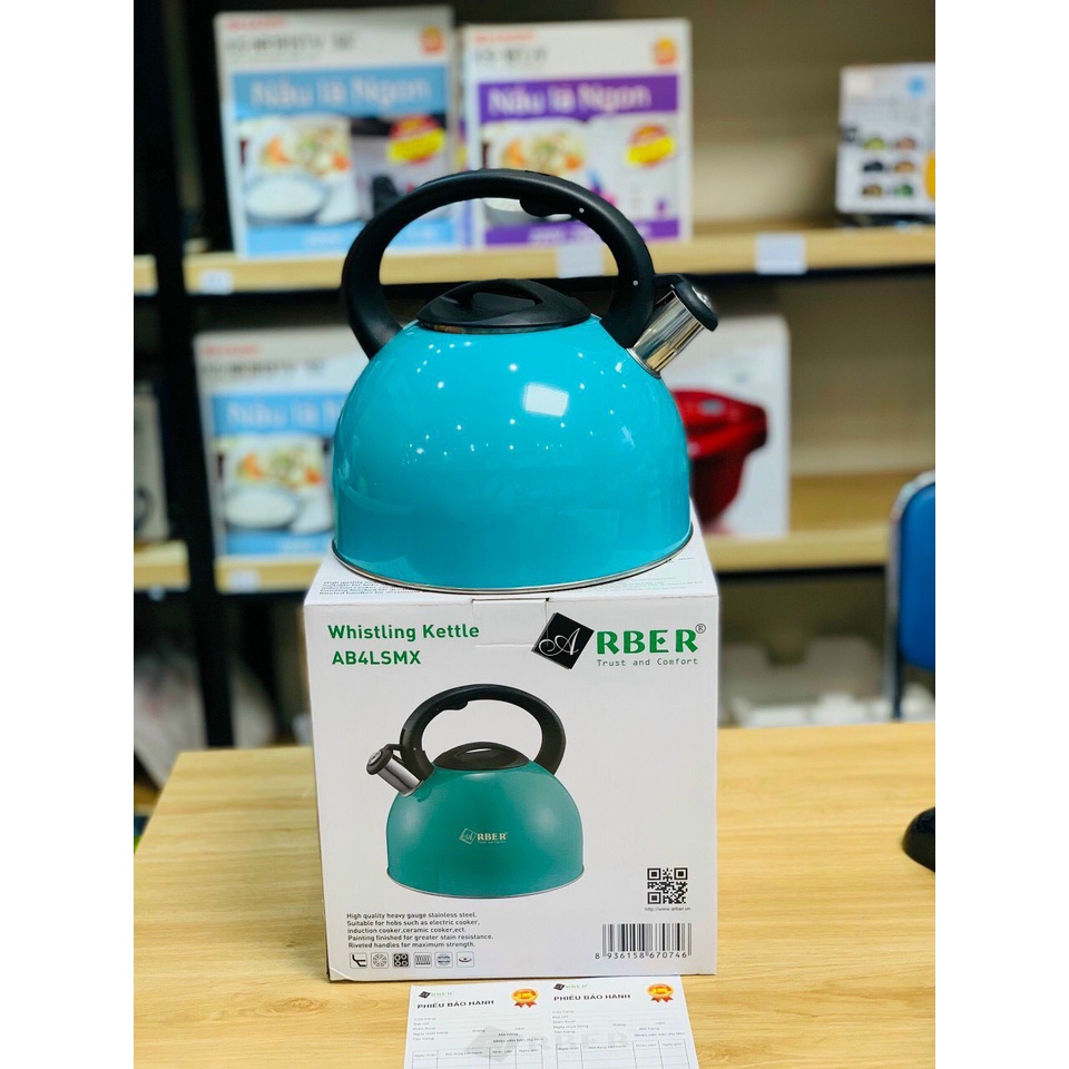 Ấm Đun Bếp Từ Arber 4 Lít (có còi báo )-siêu nấu nước siêu tốc-Ấm đun nước inox 304 đáy từ-hàng chính hãng-bh 12 tháng