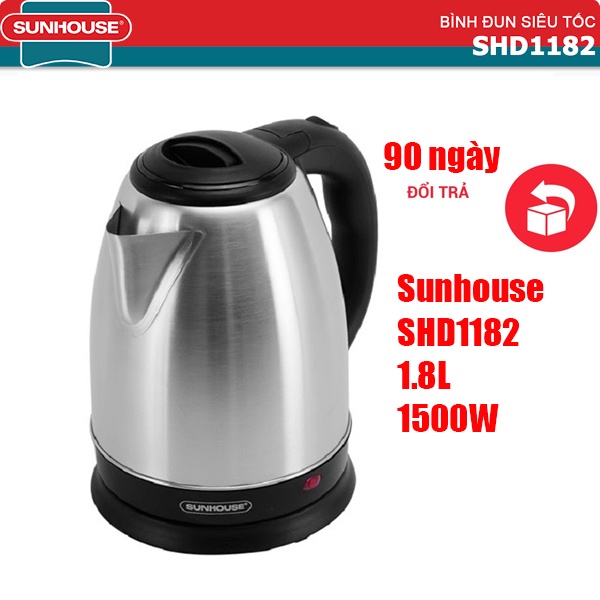 Ấm đun, bình đun siêu tốc 1.8L Sunhouse SHD1182 là sản phẩm chính hãng, Hướng dẫn sử dụng Tiếng Việt, Tem phụ đầy đủBảo hành lỗi đổi mới 90 ngày
