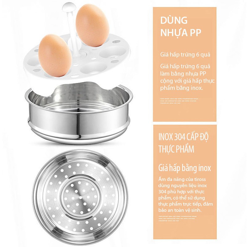 - Sản phẩm có phần ruột ấm được làm từ chất liệu inox USU 304, phần giá hấp trứng làm bằng nhựa PP không chỉ phù hợp với mọi loại thực phẩm mà còn mang tới độ an toàn cao khi sử dụng. Việc vệ sinh ấm sau khi nấu cũng vì thế mà đơn giản hơn.