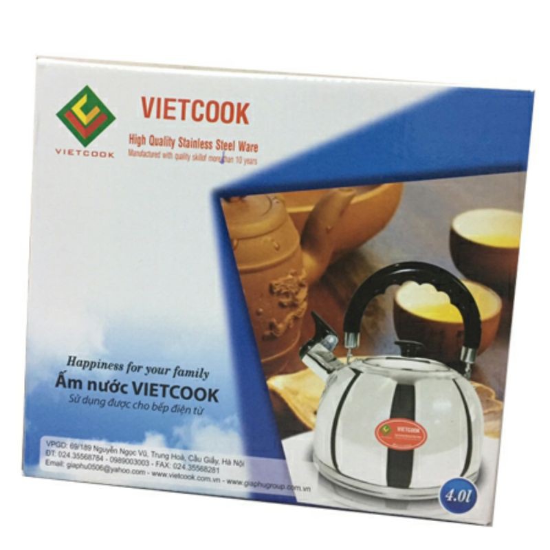 Ấm đun nước inox Vietcook được sản xuất từ inox nhập khẩu