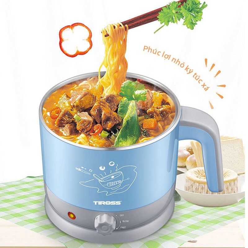 Ấm đun nấu đa năng Tiross TS1366 được thiết kế tiện lợi, giúp nấu nhiều món ăn ngon như hâm, hấp, hầm, luộc, pha mì tôm, nấu nước sôi... cho những người hằng ngày có công việc bận rộn ở văn phòng. Vì có kích thước nhỏ gọn nên cũng tiện lợi cho bạn đem theo đến nới làm việc hoặc mang theo tỏng nhưng chuyến đi công tác xa, đi du lịch...