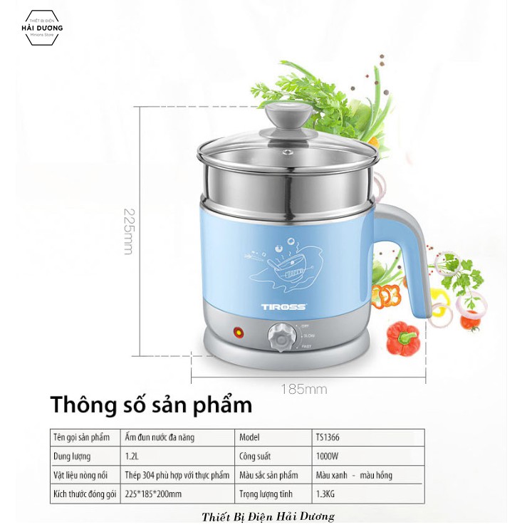Giới thiệu Ấm Đun Nấu Đa Năng Tiross TS1366 - 1.2L - Công suất 1000w - Bảo hành 1 năm