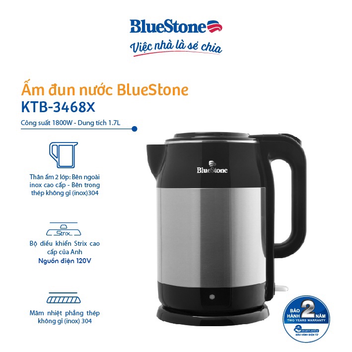 Ấm đun nước 1.7L 1500W BlueStone KTB-3468X