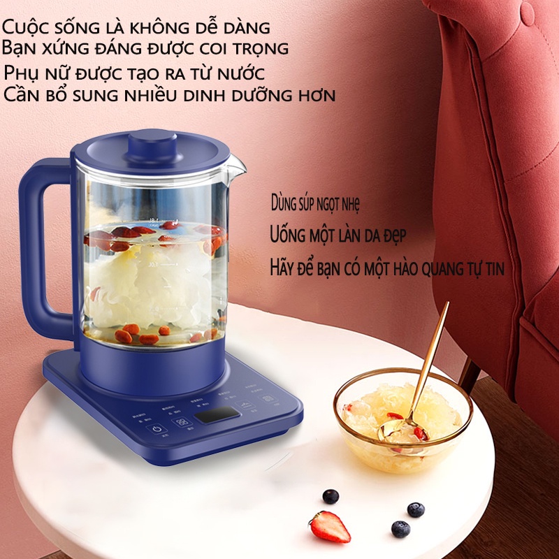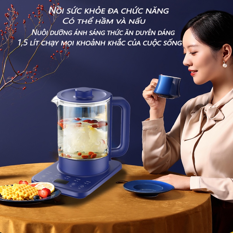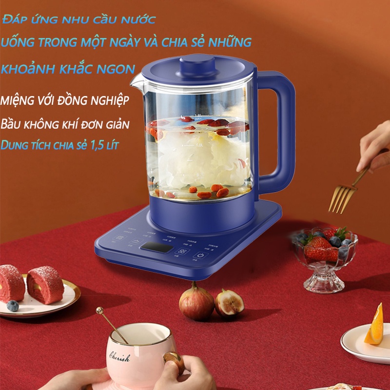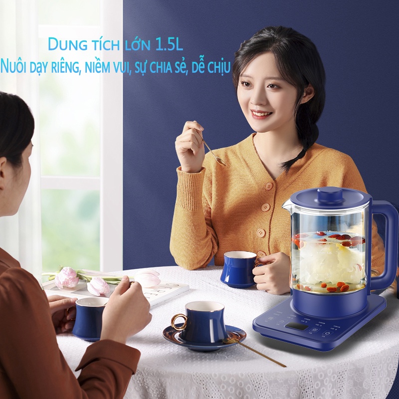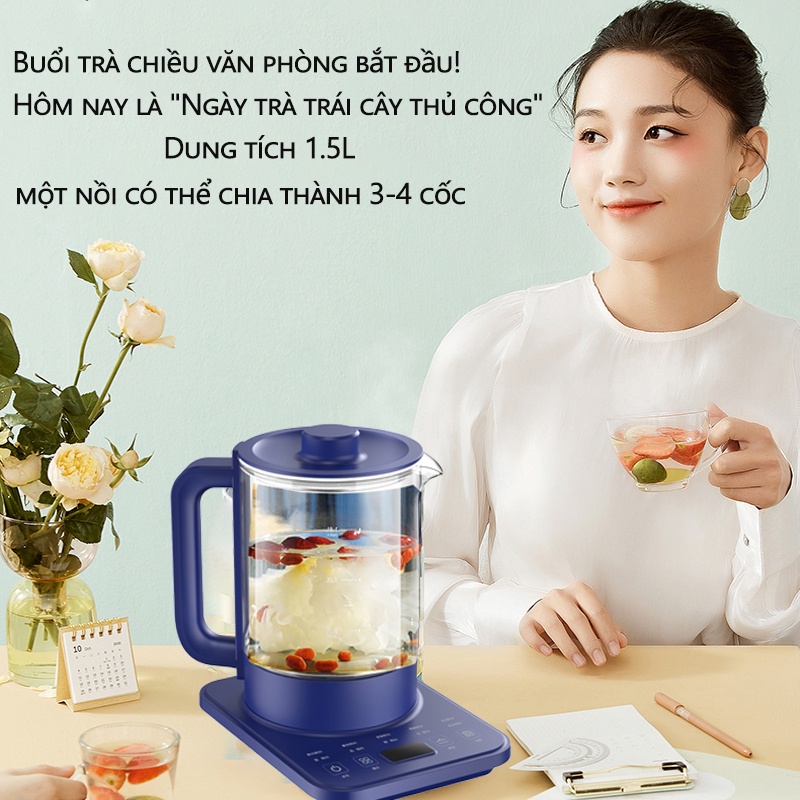 Ấm đun nước ấm pha trà bình thủy tinh 1.5 lít - Đa chức năng 24 chế độ pha trà, hâm sữa-BẢO HÀNH 3 THÁNG