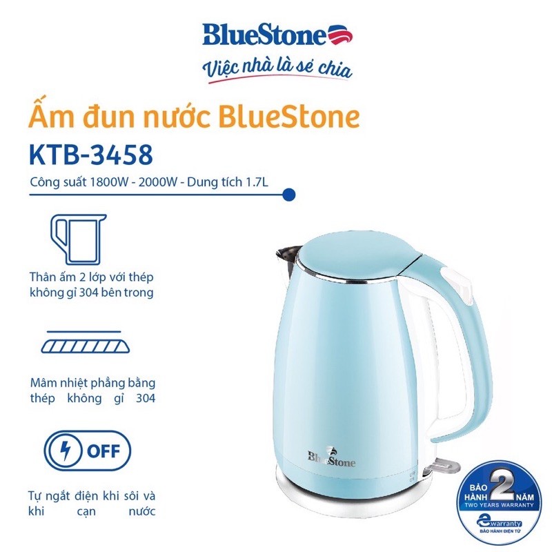Ấm Đun Nước BlueStone KTB-3458 (1.7L) - Hàng chính hãng - Bảo hành 24 tháng