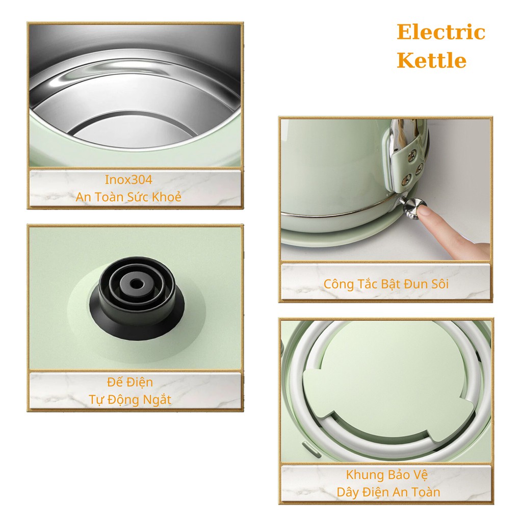 Ấm đun nước siêu tốc được làm từ chất liệu inox 304 bền đẹp, không độc hại, tốt cho sức khỏe người sử dụng.
