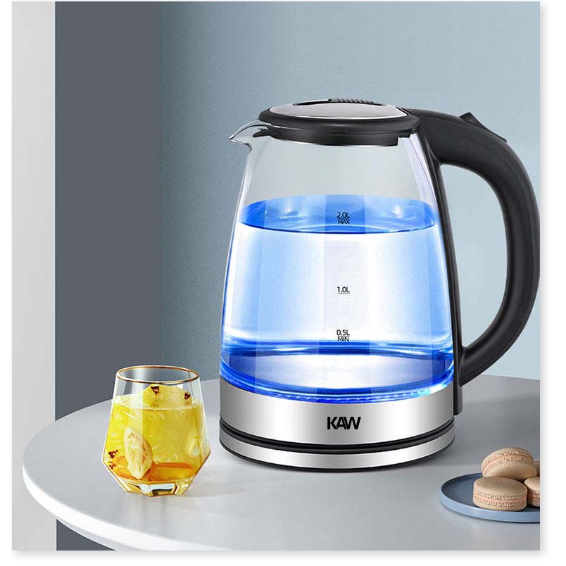 Ấm Đun Nước Điện KAW RK1818 ✔️Chính Hãng✔️ dung tích 2L, tiết kiệm điện, bình thủy tinh trong suốt, nước nóng siêu nhanh