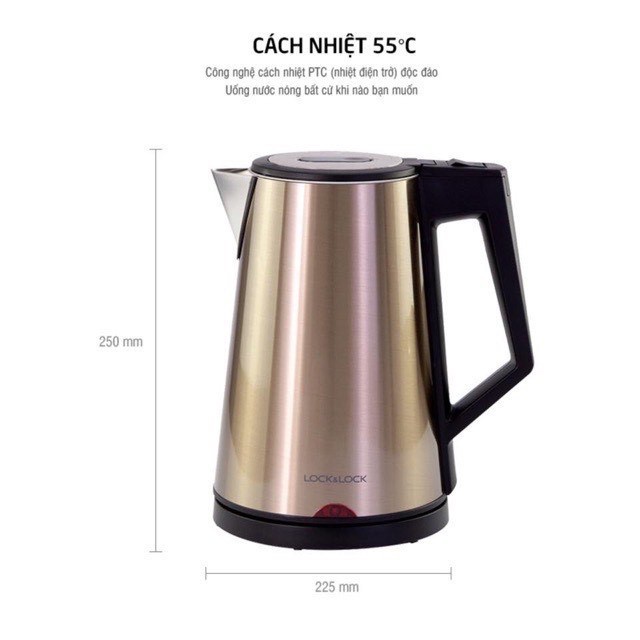 Ấm đun nước Lock&Lock ✨ ✨ siêu tốc vỏ thép 1,7L EJK631BLK chính hãng