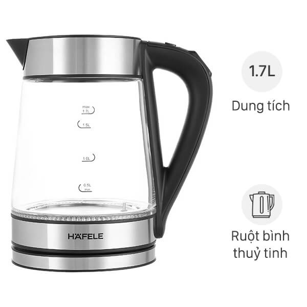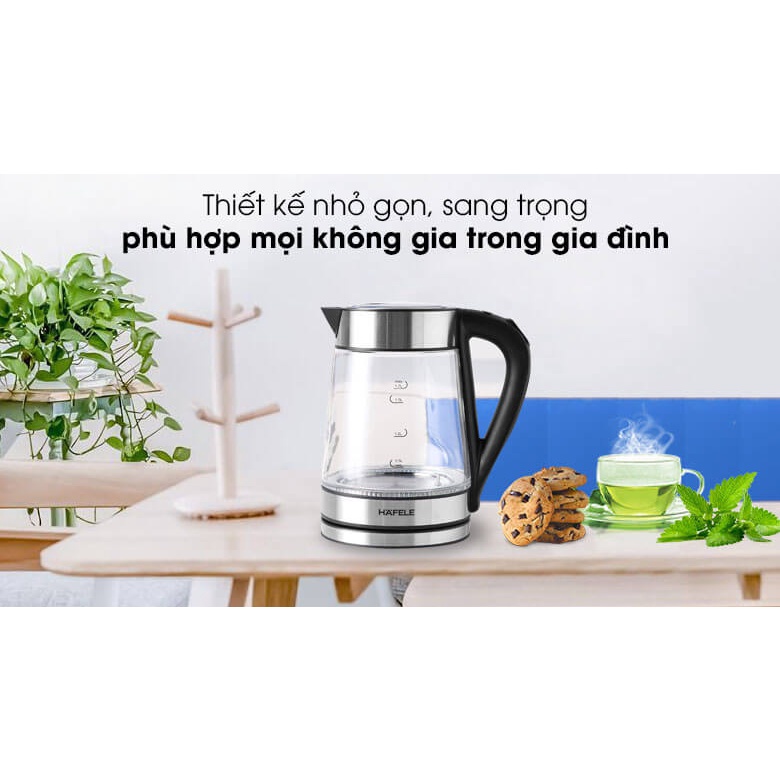 Bình đun siêu tốc Hafele thiết kế sang trọng, thanh lịch với chất liệu bình bằng thủy tinh trong suốt chịu nhiệt tốt