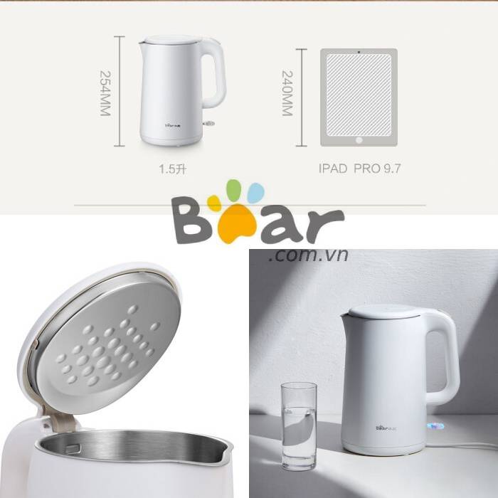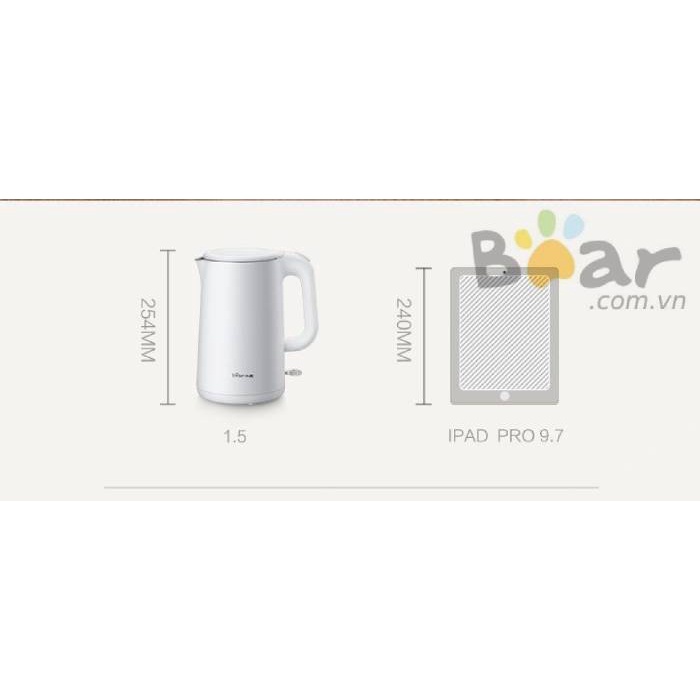 Ấm đun nước cao cấp đến từ thương hiệu Bear 1.5 lít công suất 1500w đun nhanh hộp dày dặn đẳng cấp thương giaCông suất: 1500W