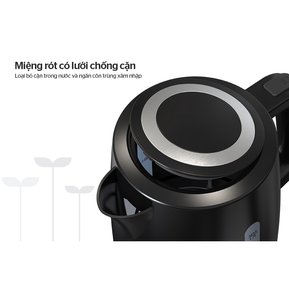 Công suất mạnh mẽ lên đến 1800W cho thời gian nấu nước nhanh chóng, giúp tiết kiệm điện năng tối đa.