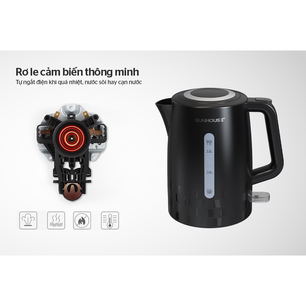 ấm đun nước siêu tốc 1.7L SUNHOUSE SHD1306-2022 bình đun nước siêu tốc Tự động tắt khi sôi hoặc trào nước trong lúc đun