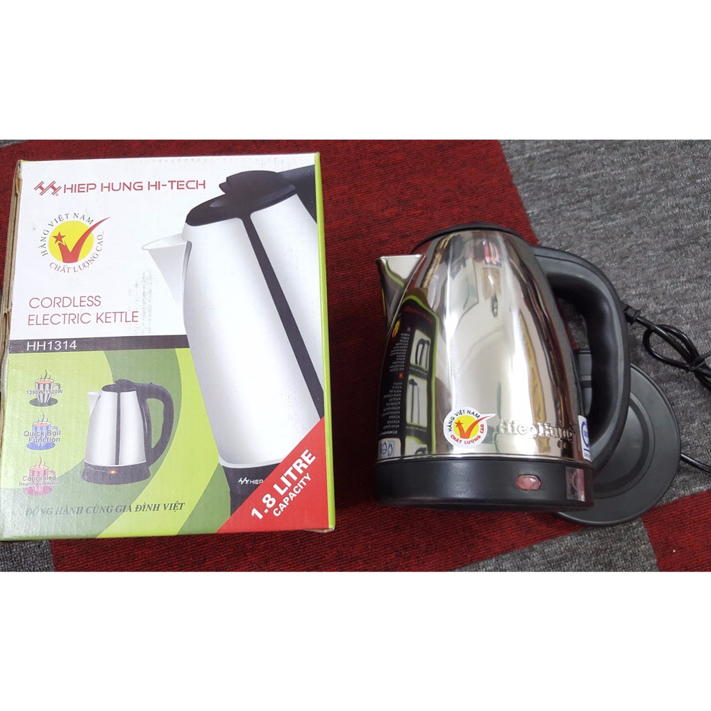 THÔNG TIN SẢN PHẨMẤm đun nước siêu tốc 1.8 lít - Thương hiệu Hiệp Hưng đạt tiêu chuẩn Hàng Việt Nam Chất Lượng Cao hay chứng nhận ISO 9001:2008 giúp tiết kiệm thời gian khi đun nước.