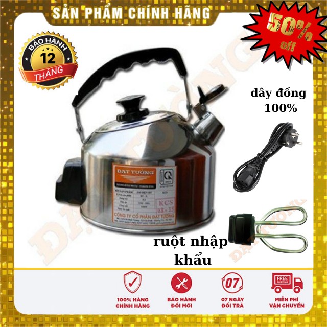 - Ấm đun nước điện ĐẠT TƯỜNG 5.0L .thiết kế ruột gà bằng inox nhập khẩu chống rỉ sét ,an toàn cho sức khỏe ,ruột gà được thiết kế thông minh ,hạn chế tối đa tình trạnh cháy