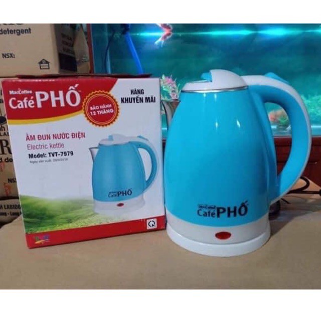 -Ấm/ Bình Đun Siêu tốc 2 Lớp Dung Tích 1.8 Lít CAFE PHỐ- Hàng quà tặng của Cafe Phố, có logo Cafe Phố in 1 mặt trên thân ấm.