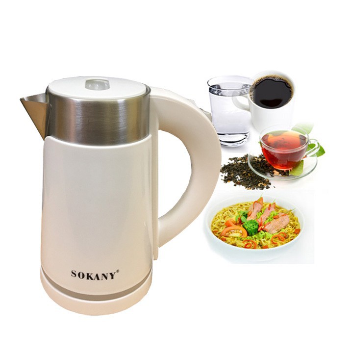 Ấm siêu tốc SOKANY 1L sở hữu thiết kế hiện đại với phần vỏ inox và nhựa cao cấp chắc chắn, tạo vẻ sang trọng cho sản phẩm.