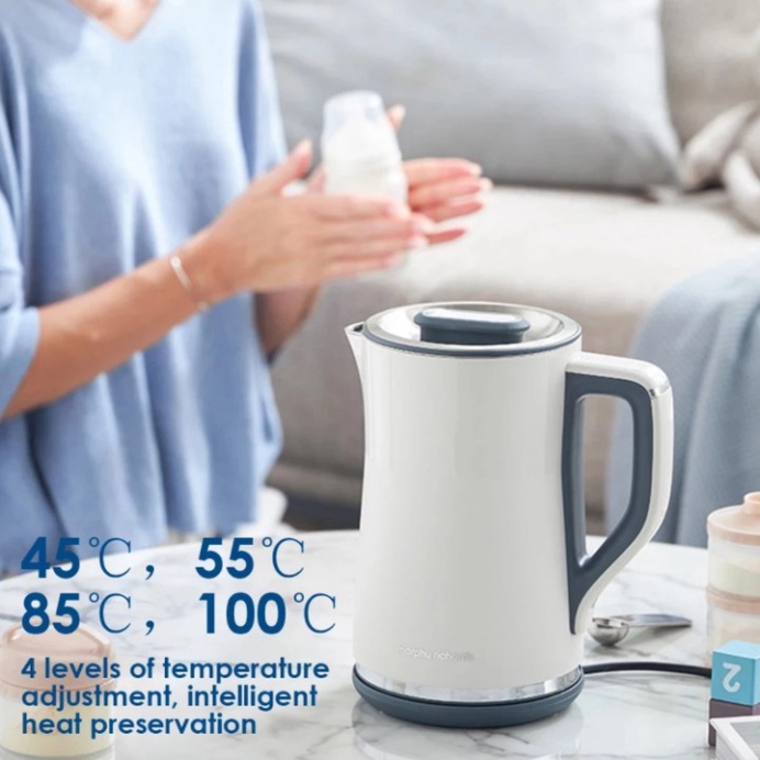 - Ấm đun nước thông minh giúp bạn đun nước nhanh chóng, lựa chọn nhiệt độ nước mong muốn có thể pha sữa, pha trà, pha cà phê,... Với sản phẩm ấm đun nước thông minh Morphy Richards MR6070 bạn không cần nhiệt kế hay tốn thời gian hòa nước nóng với lạnh để có nhiệt độ mong muốn. Các bà mẹ bỉm sữa chỉ cần đun sôi nước sau đó lúc nào cần pha ấn lại mức nhiệt độ mong muốn là đã có nhiệt độ nước tiêu chuẩn để pha sữa, không lo sai nhiệt độ làm phá huỷ chất dinh dưỡng của sữa