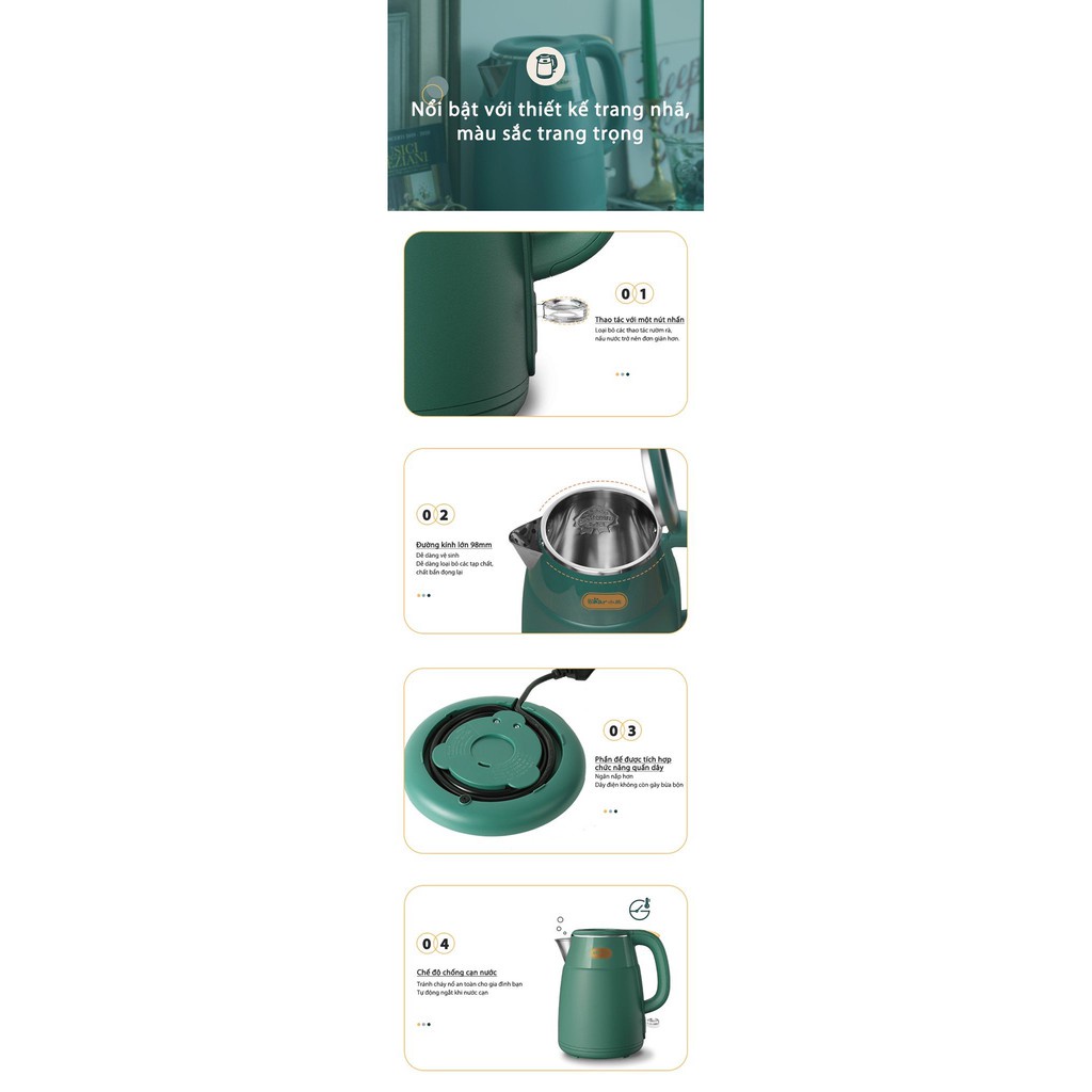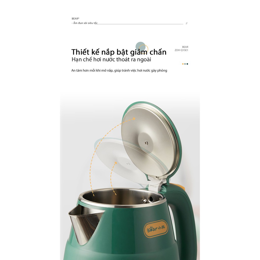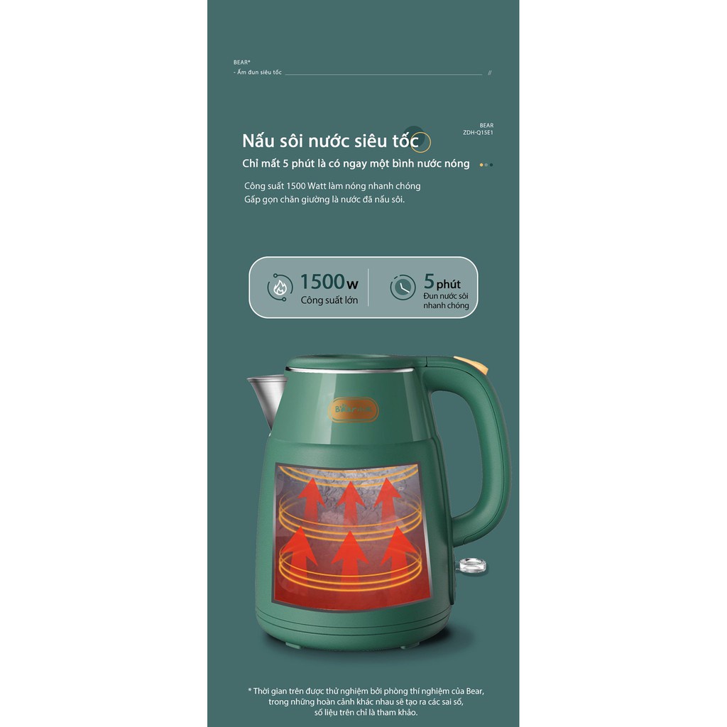 Giới thiệu Ấm đun nước siêu tốc đa chức năng Bear ZDH-Q15E1 1,5 L công suất lớn 2 lớp cách nhiệt có hẹn đặt giờ