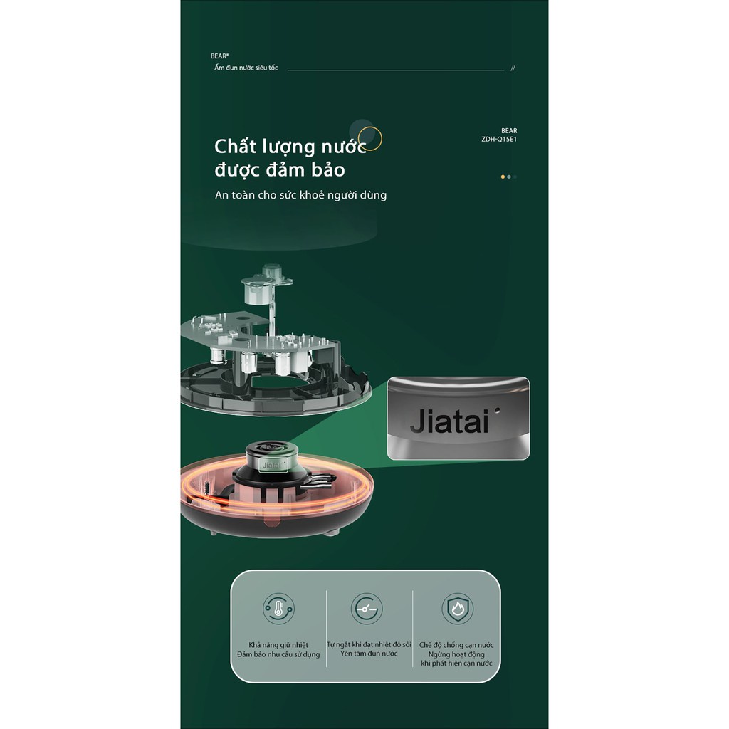 Ấm đun nước siêu tốc đa chức năng Bear ZDH-Q15E1 1,5 L công suất lớn 2 lớp cách nhiệt có hẹn đặt giờGIỚI THIỆU SẢN PHẨM: