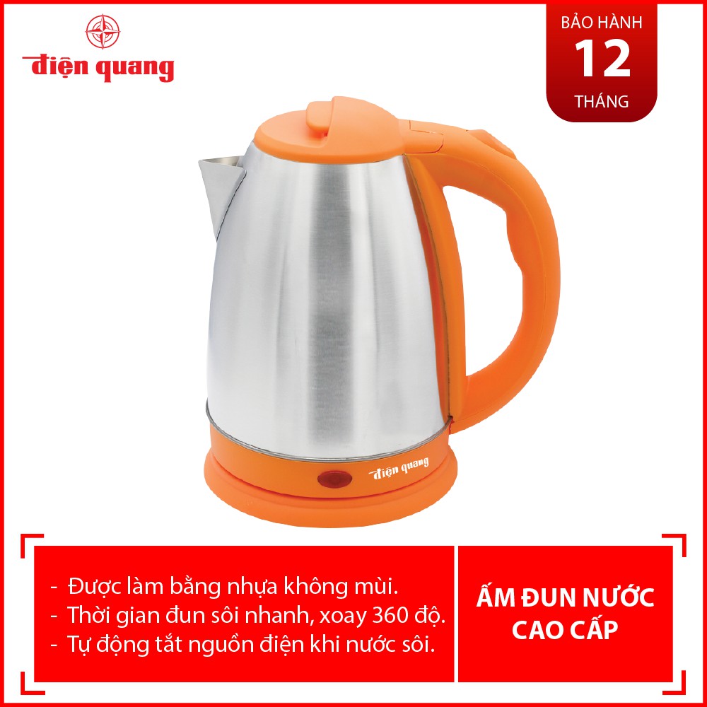 Ấm đun nước siêu tốc Điện Quang ĐQ EKT07 1518 O (1500W, 1.8L, INOX 201, nhựa PP, màu cam)